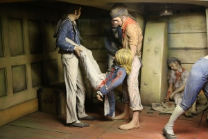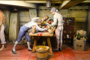 Неповторимой выглядит медицинская коллекция на 4 этаже. Это собрание из 39 завораживающих диорам. У музейщиков часто возникают проблемы с недостатком древних артефактов, а диорамы - отличный выход из положения. От небольших, как, например, диорама анатомического театра в Падуанском университете, до огромных, как операционная 1980-х годов. Прислонитесь к стеклу и вы ощутите себя участником этих событий. Зубоврачебный кабинет воссоздан так, что чувствуешь даже запах, не говоря про муки и страдания, которые испытывал пациент, находящийся в кресле дантиста XVIII столетия. Огромная операционная с больным на столе, все на местах, как будто время остановилось.