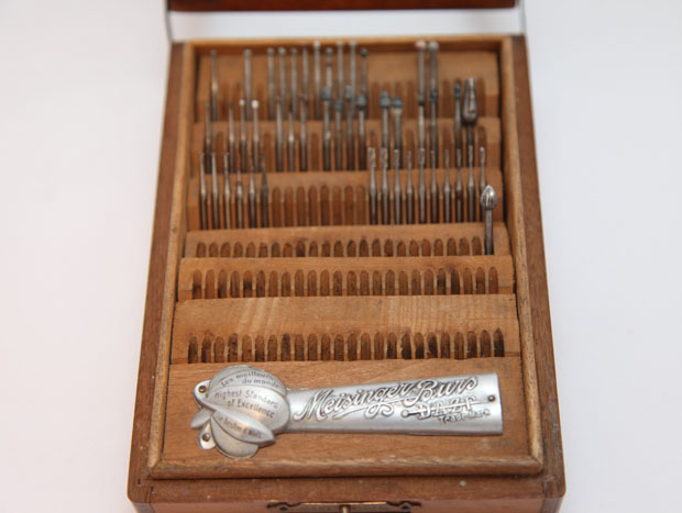 Набор инструментов в кожаном футляре для удаления зубного камня