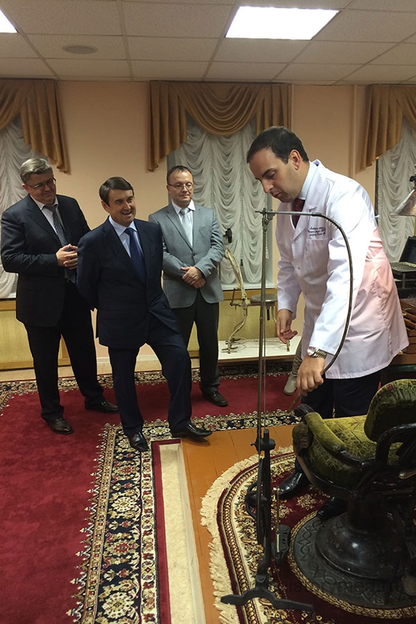 В ходе экскурсии заведующий кафедрой, профессор Константин Анатольевич Пашков не только продемонстрировал самую большую в России и СНГ коллекцию по истории зубоврачевания и стоматологии, но и поделился планами Совета по развитию историко-медицинских музеев при Минздраве России. Совет создан в августе по инициативу нашего Университета. За короткий срок успели подготовить проекты ряда отраслевых документов, которые помогут развиваться вузовским и научным музеям, а также сохранить огромное наследие отечественной медицины.