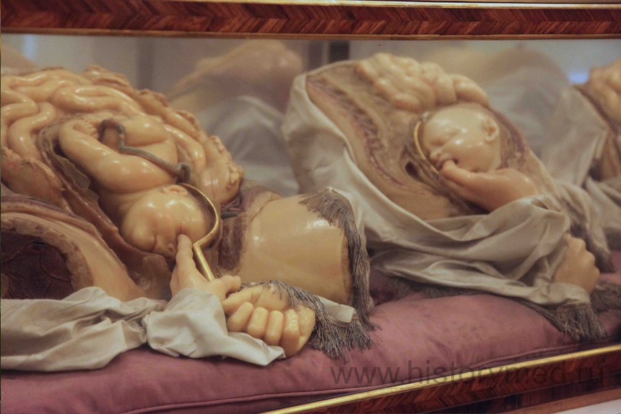 Особенность этой коллекции в великолепно переданной лимфатической системе. Поражает своей натуралистичностью акушерская часть коллекции. В то время женщины умирали в родах постоянно. Забеременеть можно было, увы, не только от мужа. Войны и кочующие армии делали свое дело. Женщину могли взять и без ее воли, а последствия, ввиду почти полного отсутствия акушерства, оказывались печальные. Именно поэтому на эту часть медицины был сделан акцент. Были созданы все стадии беременной матки, представлены порядок наложения щипцов, положения рук принимающего роды, аномалии беременности и т.д. Второй такой коллекции в мире больше нет. Равное по величине собрание находится во Флоренции, но там свои особенности и детали.