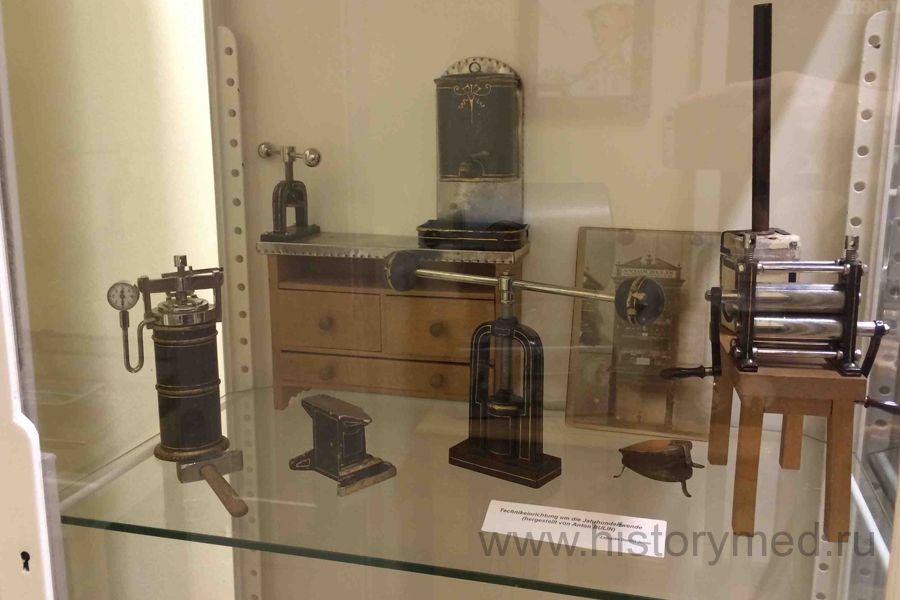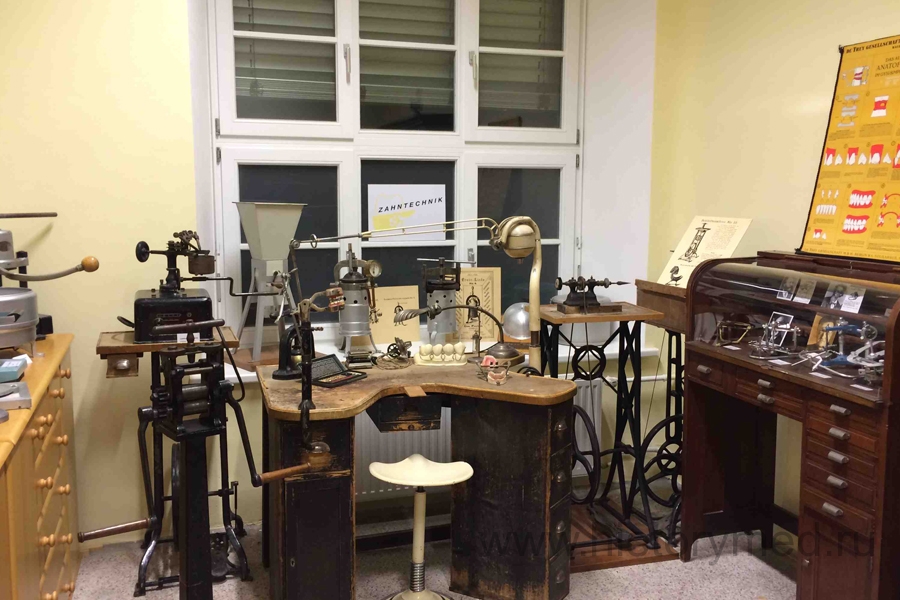 Нашлось место для рентгеновских аппаратов различных модификаций и зуботехнических предметов. Рабочий стол зубного техника, вулканизаторы, гипсовая мельница – все это интересно. Но венский музей обладает еще и уникальной коллекцией моделей всей зуботехнической утвари. Это, как домик для гномов-зубных техников. Кто знает, может и у них болят зубы, и ночью они принимаются здесь за работу.