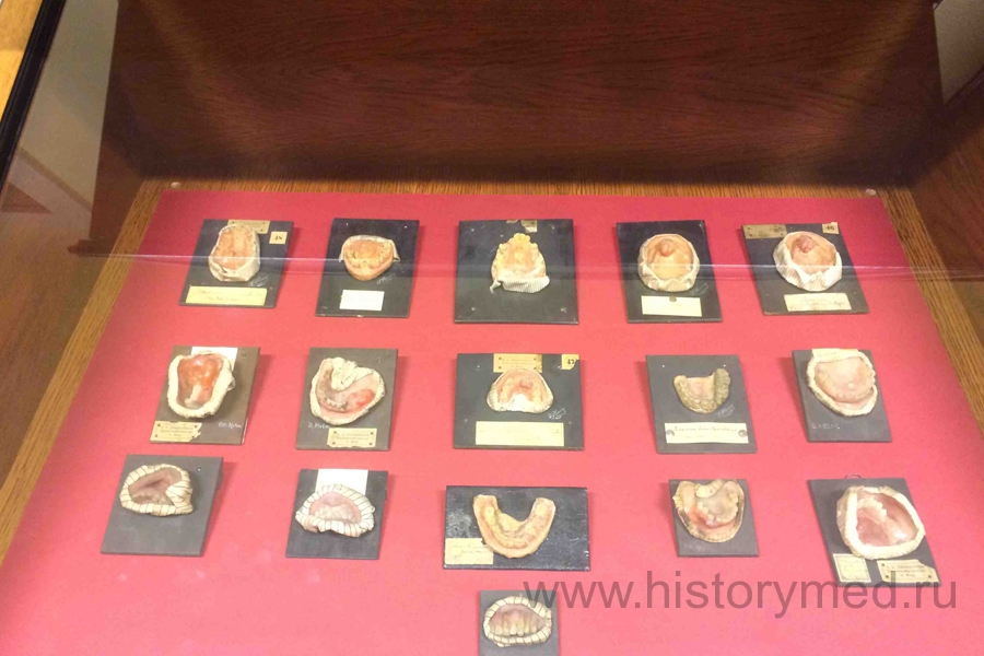 Вообще анатомо-биологической части посвящена добрая половина экспозиции. Сразу два зала и стенды в других залах показывают этапы развития зубов у человека – от младенчества до старости. Хорошо подобраны препараты с поражениями и патологией зубов. В основном это серийные модели конца XI – начала XX века.