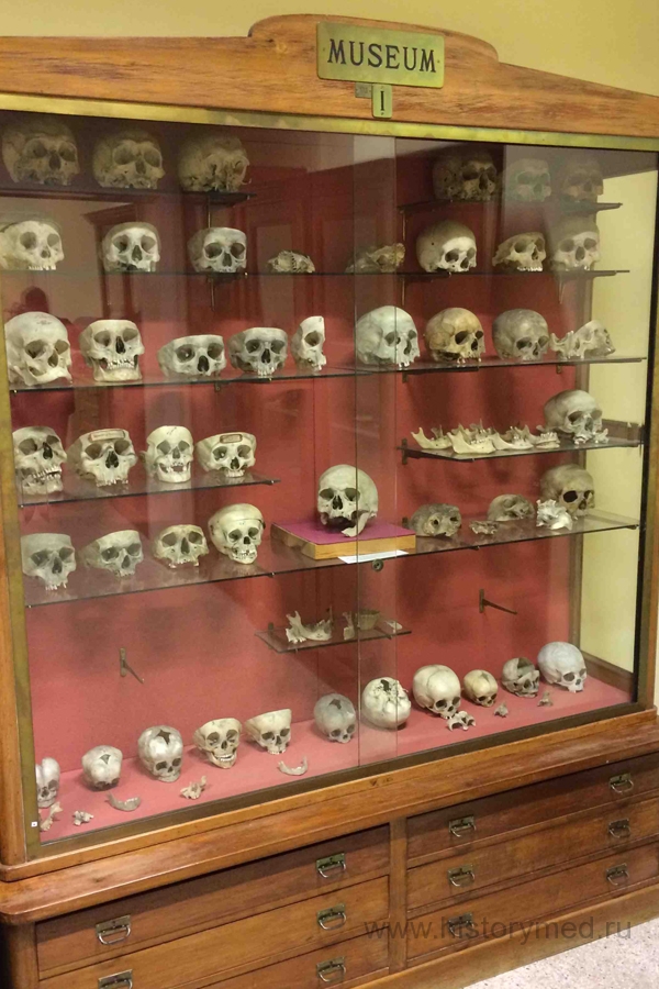 - Гипсовые, искусно выполненные муляжи челюстно-лицевых ранений. Они не представлены на обозрение посетителей, но нам их показали и это - потрясающее зрелище! В основной экспозиции есть коллекция черепов человека. В большинстве своем они визуализируют серьезные травмы, полученные на полях сражений, с неправильно сросшимися переломами нижней и верхней челюсти и лицевого скелета. Такие экспонаты также очень редки.