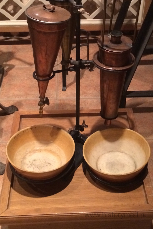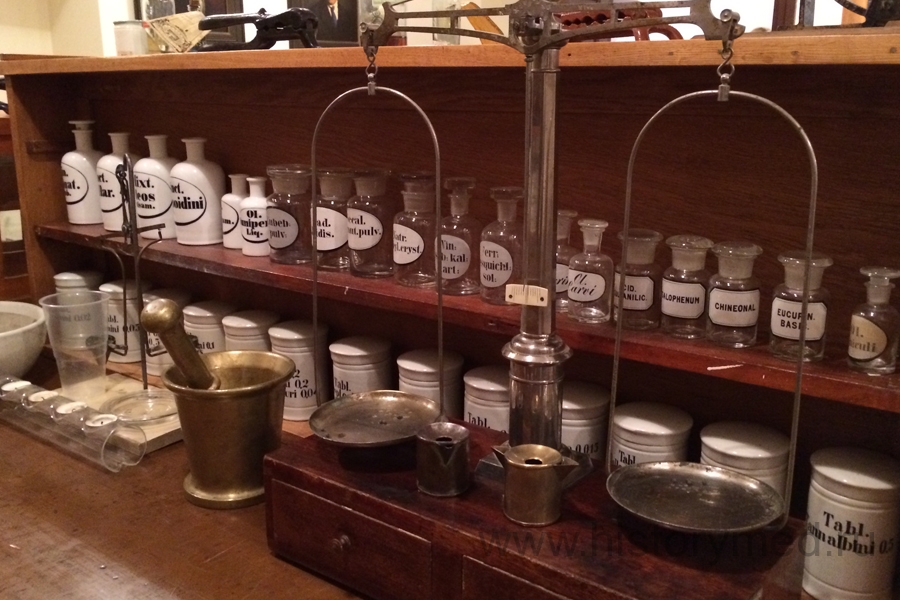 В холле нас встретила экскурсовод, которая была одета в платье фармацевта средних веков. Поднявшись наверх, мы увидели огромную коллекцию аптечной посуды, различных разновесов и ступок. Нам рассказали предысторию этой аптечной утвари.