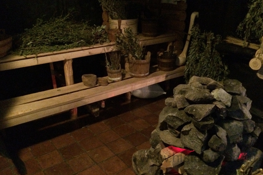 Затем, минуя аптечный огород, мы оказались в бане «по-черному». Известный факт, что бани в средние века были намного популярнее, чем сейчас и, помимо мытья, в банях рожали, делали операции и многое другое. Все это наглядно продемонстрировано в экспозиции.