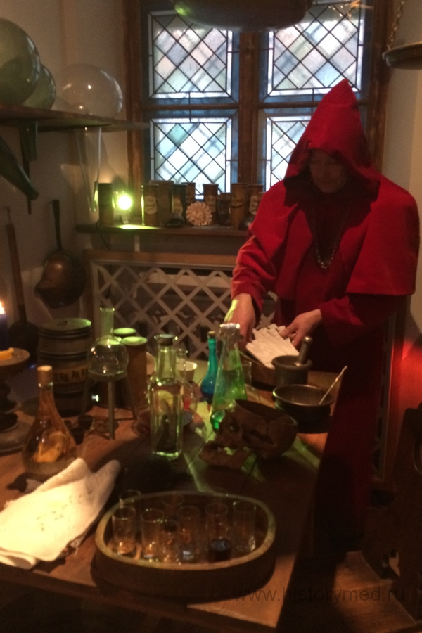 В конце экскурсии мы посетили лабораторию алхимика. И здесь, в полумраке, нас ожидало действо, в ходе которого, на наших глазах приготовили "эликсир жизни".