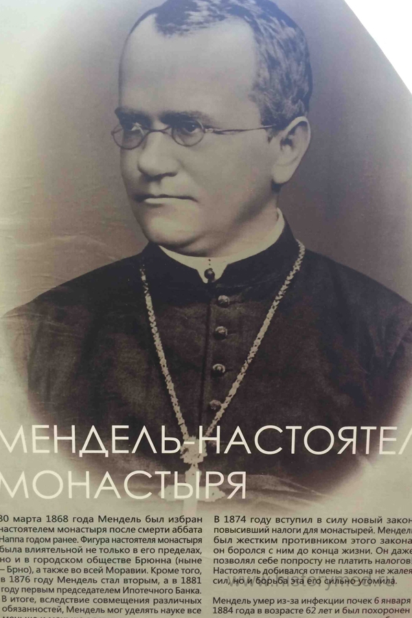 Мендель, бывший настоятелем Августинского монастыря в Старе Брно, сумел совместить духовные обязанности и научные наблюдения за наследственностью растений, которыми он занимался с истинным монашеским терпением на протяжении 10 лет в период с 1854 по 1864 год, обойдя в этом самого Чарльза Дарвина.