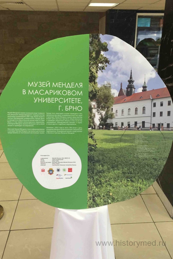 Выставка стала первым совместным проектом кафедры истории медицины МГМСУ им. А.И. Евдокимова и музея Менделя Масарикова университета (г. Брно, Чехия), посвященным жизни и исследованиям знаменитого основоположника генетики Грегора Менделя.