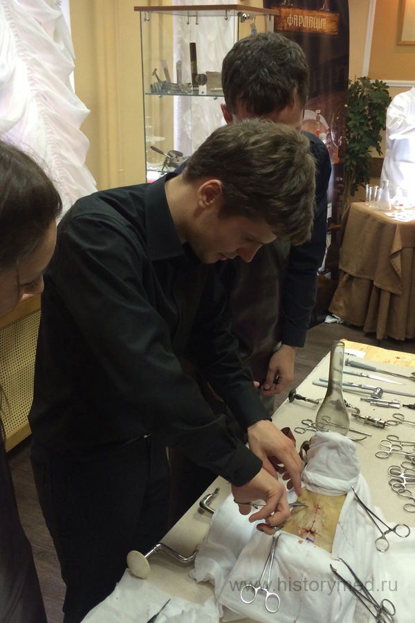 Для коллектива кафедры и ребят, которые проводили акцию, этот день был очень трудным. Накануне ушел из жизни наш дорогой Друг Кирилл Шадрин. Он так готовился, так стремился сделать все на уровне лучших мировых музеев, что бы должным образом принять гостей и показать результаты своего труда. Ведь за два года ребята с ним вместе восстановили работоспособность более 10 старинных бормашин (XIX –ХХ веков)! Но, жизнь распорядилась по-своему. Сначала мы хотели все отменить. Боль утраты затмевала все. Но, потом решили, – будем проводить! Тем более, что почти все было спланировано и готово. На его место, у операционного стола XIX века встали друзья и без устали показывали изумленным гостям приемы хирургии прошлого.