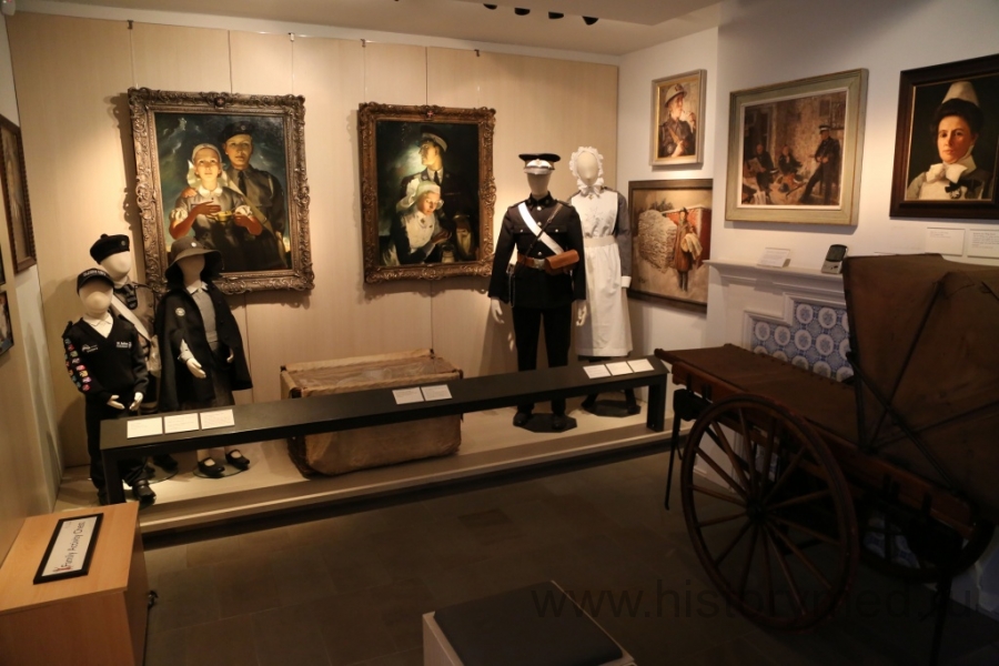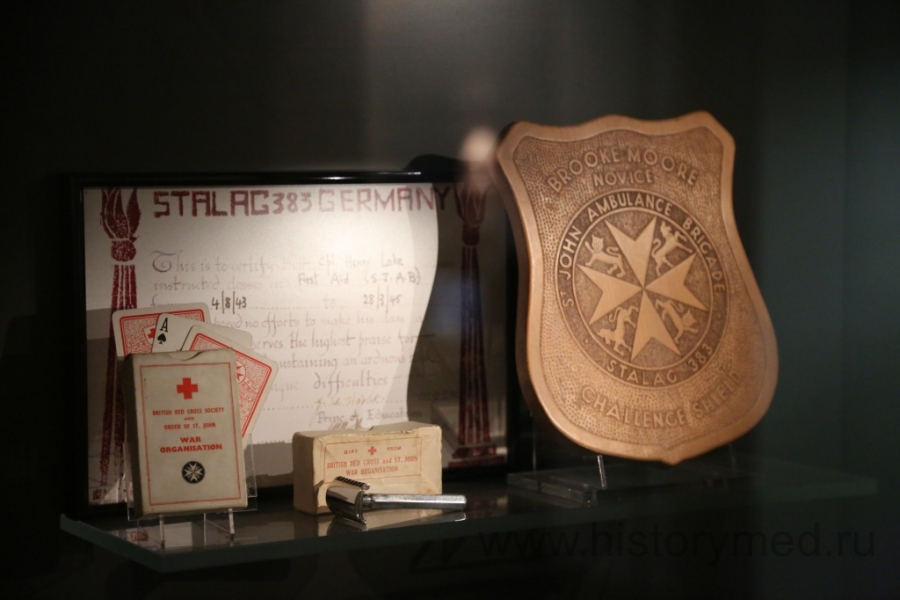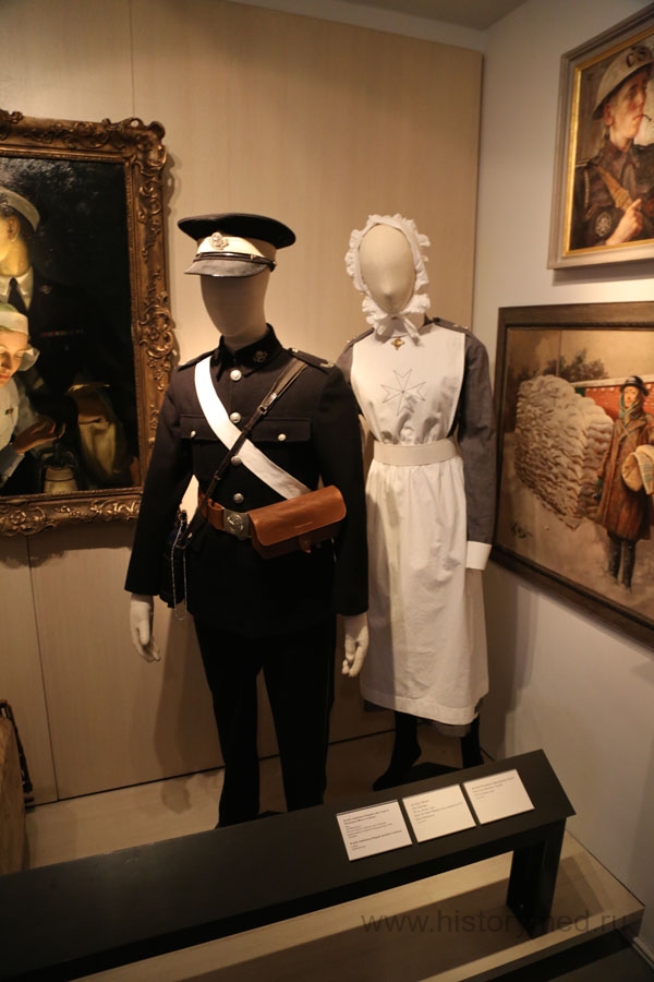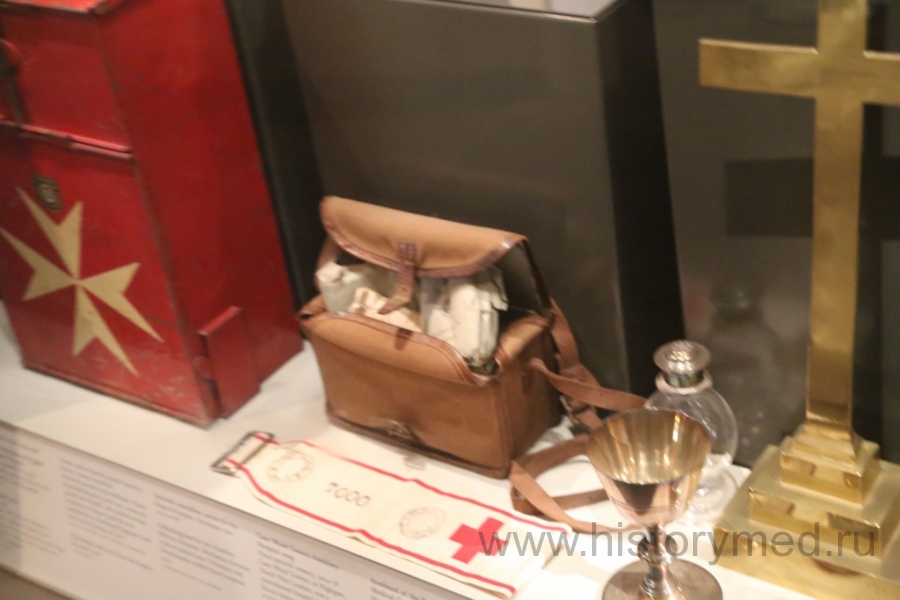 Среди редких экспонатов нужно обратить внимание на каталку, которая использовалась в XIX-XX веках для перевозки раненых. Большие колеса существенно облегчали труд санитаров. Подобные каталки мы встречали в хрониках многих войн этого периода, но до наших дней она сохранилась, пожалуй, именно здесь. Интересно и одеяние сестер милосердия, с характерным мальтийским крестом на груди (как у основателей Ордена).
