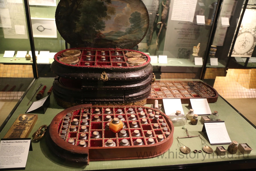 Коллекция истории медицины в The science and Art of Medicine галерее - одна из величайших в мире коллекций: она раскрывает историю медицины по всему миру и в разных культурах. Экспозиция сделана в классической манере – от древности до наших дней с четкой хронологией. Это очень удобно для понимания процессов развития, например, эволюция зубоврачевания прослеживается минимум в четырех эпохах. Витиеватые лабиринты из стендов и витрин отражают абсолютно все периоды становления и развития медицины. Сразу бросается в глаза обилие прекрасных экспонатов и музейных предметов. Это отличительная черта музея – минимум бутафории и максимум настоящего. Загляните в витрины: там Египетские мумии, тут знаменитые Греческие и Римские вотивы, а вот доисторический скальпель и ступка, древний поильник. Римский пинцет теснится с искусственными носами, в то время как статуи святых смотрят на великолепную аптечку генуэзского дворянина. Сокровища Древнего Египта, Греции и Рима расскажут вам о достижениях этих народов в развитии медицины. Здесь, наряду с основными клиническими и лабораторными специальностями, такими как: стоматология, офтальмология, микробиология, фармакология и хирургия, есть разделы, имеющие отношение и к другим живым медицинским традициям, в том числе африканской, китайской, индийской и исламской практик.