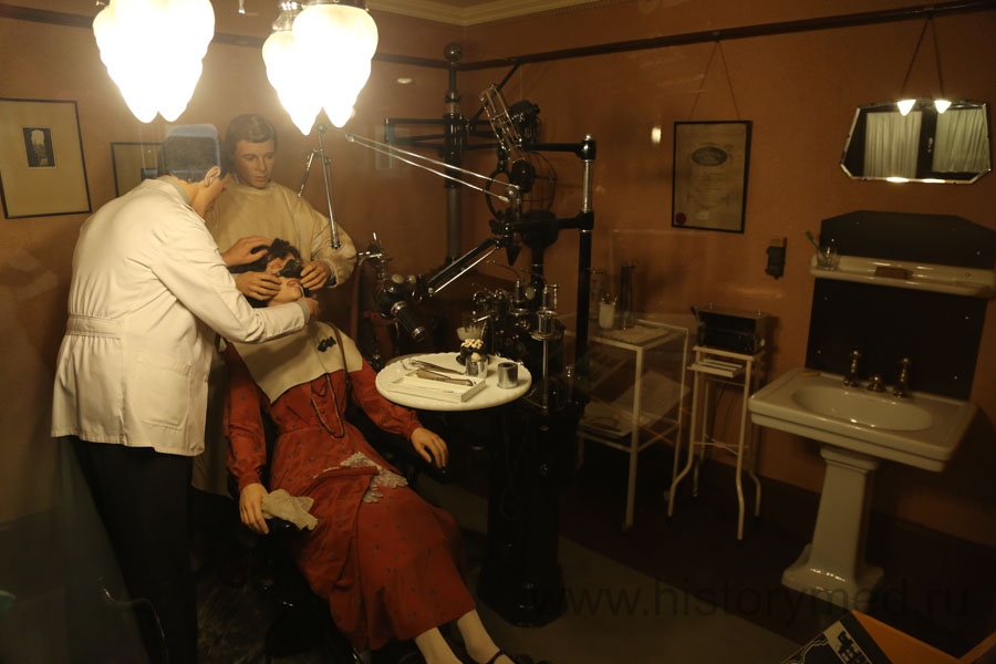 История зубоврачевания представлена первыми щипцами, ручными борами, причудливыми приспособлениями цирюльников и хирургов, массой инструментария и протезов, различными материалами для лечения зубов. Есть тут и чудо техники XIX века – заводная бормашина (с пружинным механизмом, как у будильника). Очень важно то, что экспозиция заканчивается современными достижениями науки, так как множество музеев отличает наличие только старинных предметов. Несведущему человеку иногда невозможно провести параллель с современностью. В этом музее понятно всё. Ультрасовременные приборы и материалы тоже представлены в витринах.