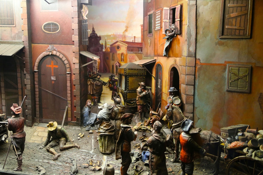 Неповторимой выглядит медицинская коллекция на 4 этаже. Это собрание из 39 завораживающих диорам. У музейщиков часто возникают проблемы с недостатком древних артефактов, а диорамы - отличный выход из положения. От небольших, как, например, диорама анатомического театра в Падуанском университете, до огромных, как операционная 1980-х годов. Прислонитесь к стеклу и вы ощутите себя участником этих событий. Зубоврачебный кабинет воссоздан так, что чувствуешь даже запах, не говоря про муки и страдания, которые испытывал пациент, находящийся в кресле дантиста XVIII столетия. Огромная операционная с больным на столе, все на местах, как будто время остановилось.