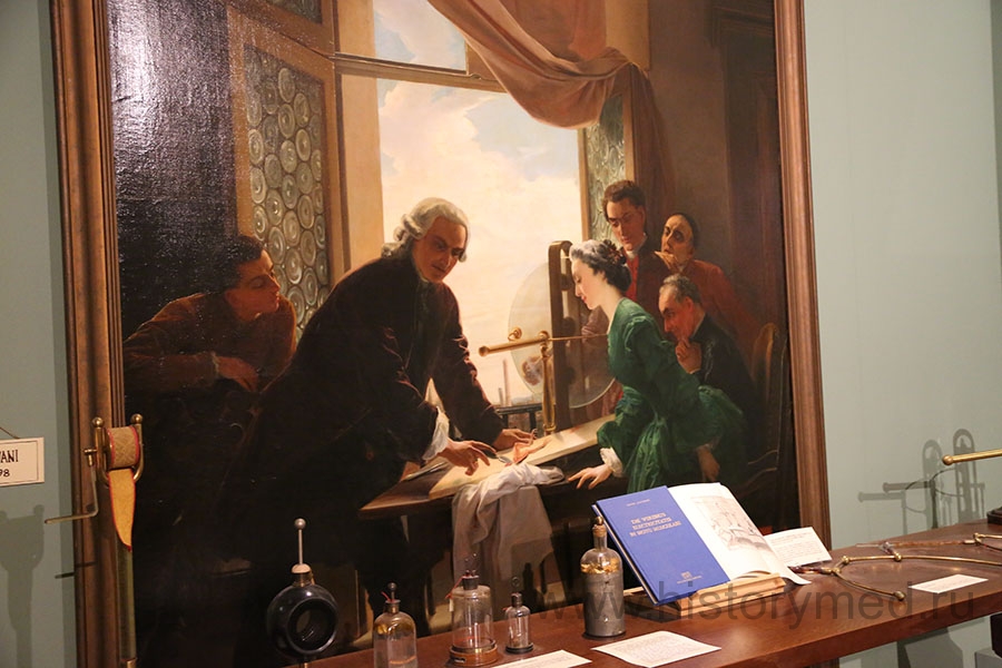 Музей очень интересен. В зале физики мы нашли прекрасный портрет Луджи Гальвани (первооткрывателя животного электричества), предметы и приборы из его лаборатории. Там же находится великолепная картина, на которой запечатлён эксперимент с лягушкой. Другие залы, не относящиеся напрямую к медицине, заслуживают внимания и оценки с точки зрения понимания уровня развития общества в Новое Время.