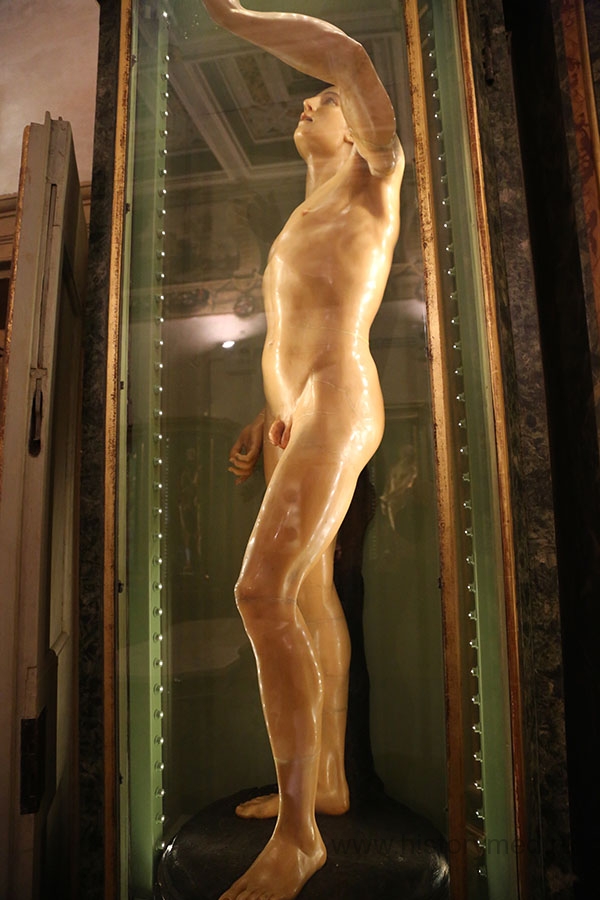 В музее можно увидеть совершенно фантастические анатомические восковые фигуры Эрколе Лелли, который был ответственен за внедрение первых восковых фигур. В октябре 1742 года, по запросу Папы Римского Бенедикта XVI, он представил свою коллекцию для анатомической комнаты Института. Это были восковые модели отдельных костей, восемь статуй людей в натуральную величину, с возможностью более детального изучения и послойного рассмотрения кожных покровов, мышечных слоев и скелета.