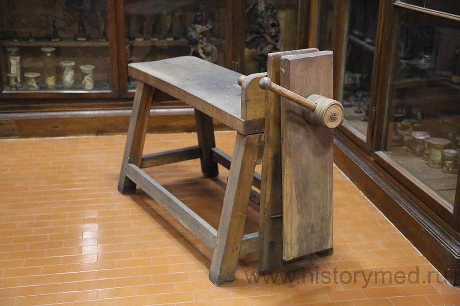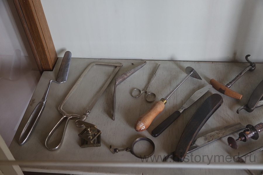 Отдельный стенд посвящен инструментарию для анатомирования. Это довольно редко встречающиеся в коллекциях музеев помпы, зажимы, расширители и ножи. Обычно все это остается «за кадром».