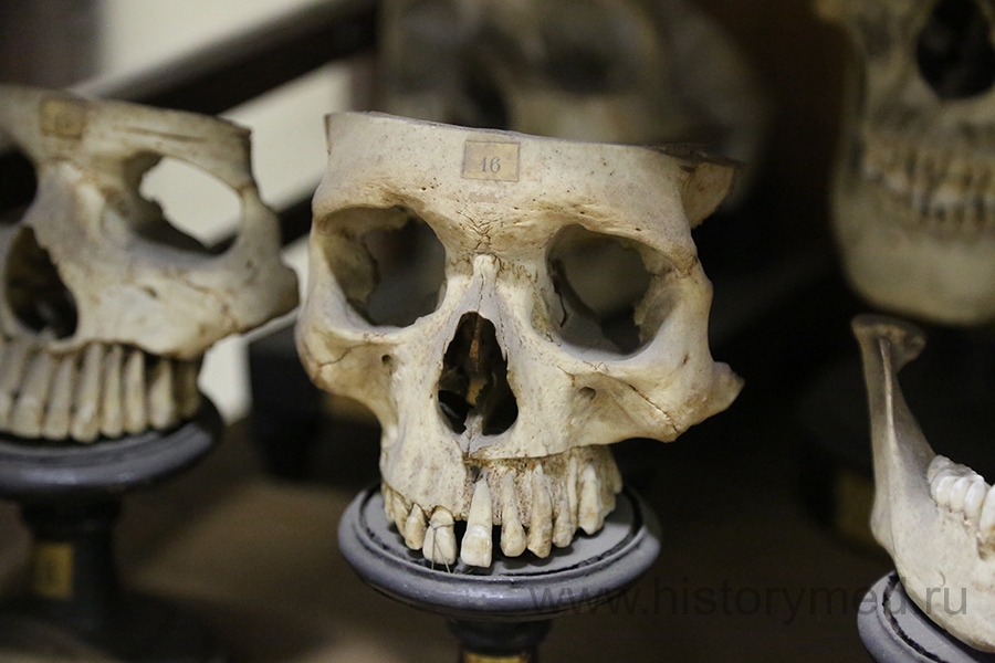 Чувствуется, что коллекция собиралась очень скрупулёзно. Одной только зубо-челюстной системе посвящено два шкафа. Также здесь можно увидеть блестящую коллекцию головного мозга.