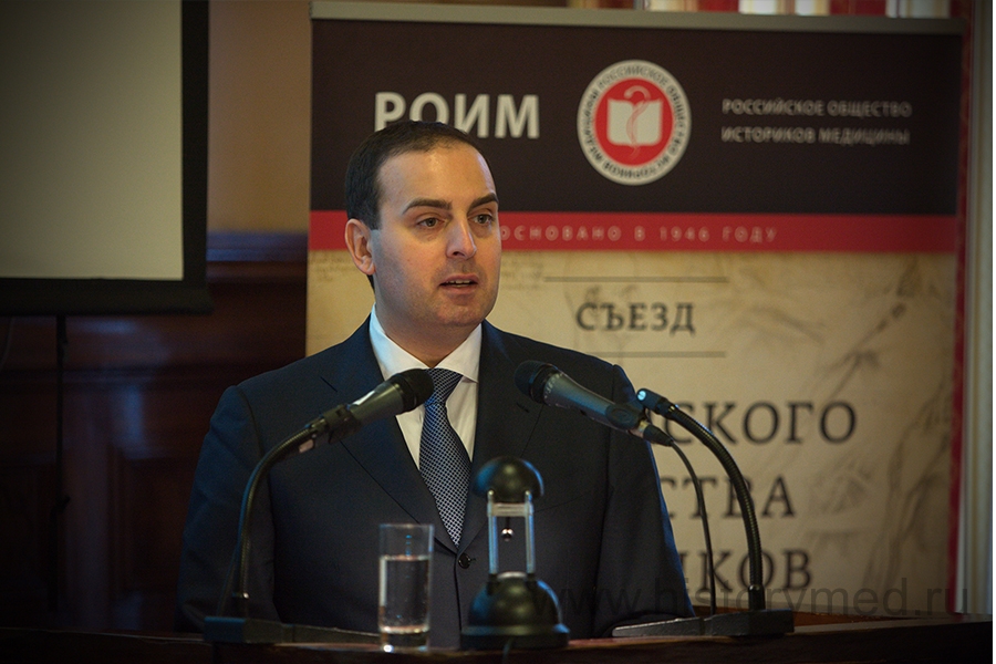 Обращаясь к собравшимся, И.Н. Каграманян зачитал приветствие от Министра здравоохранения Российской Федерации Вероники Игоревны Скворцовой. Он отметил, что место встречи участников глубоко символично, поскольку в стенах Национального НИИ общественного здоровья не только традиционного располагалось Всесоюзное общество историков медицины, но и уже многие годы история медицины развивается как научное направление. Здесь же, как известно, находится редколлегия профессионального журнала, заседает единственный в нашей стране диссертационный совет по специальности. Сохранение историко-медицинского наследия нашей страны – задача, которой Минздрав России уделяет большое внимание. За последнее время проведены две международные научно-практические конференции по музейному делу, сформированы отраслевые документы по поддержке музейной работы, составлен Всероссийский реестр медицинских музеев. Совсем недавно был создан Центр развития историко-медицинских музеев Российской Федерации. Активно работает Совет по данной проблематике, в состав которого входят ведущие историки медицины нашей страны. Проведено три научно-методических совещания, более десяти научно-практических конференций, учреждена Олимпиада по истории медицины для студентов медицинских вузов.