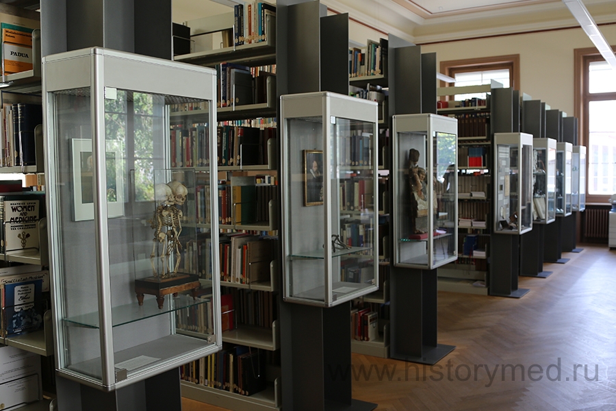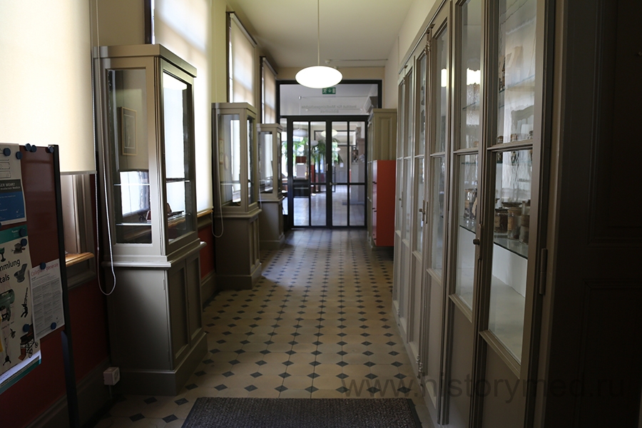 Здание, где располагалась раньше большая экспозиция, сейчас на ремонте. Поэтому в институте представлены лишь основные предметы, которые иллюстрируют основные вехи развития медицины. Ампутационный нож XVI века, ампутационная пила XVII века, скарификаторы и инструменты XVIII-XIX веков, микроскоп Левенгука (вероятно учебная копия). Есть несколько банок из университетской аптеки, коллекция очков, аппарат для записи тонов сердца, неврологический молоточек и акушерские щипцы. Наряду с портретами и барельефами все это создает ощущение достаточности. Да, это совсем не публичный музей, но он хорошо показывает то, о чем гласят все учебники истории медицины мира.