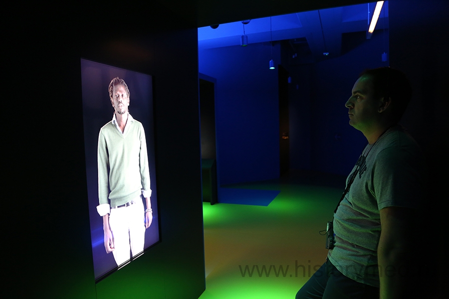 Лейтмотивом по всем разделам выставки звучат трехминутные рассказы свидетелей преступлений против человека. С мониторов высотой с человеческий рост, на вас смотрят люди всех рас и вероисповеданий. У каждого из них свой рассказ о своей судьбе и пережитых страданиях…