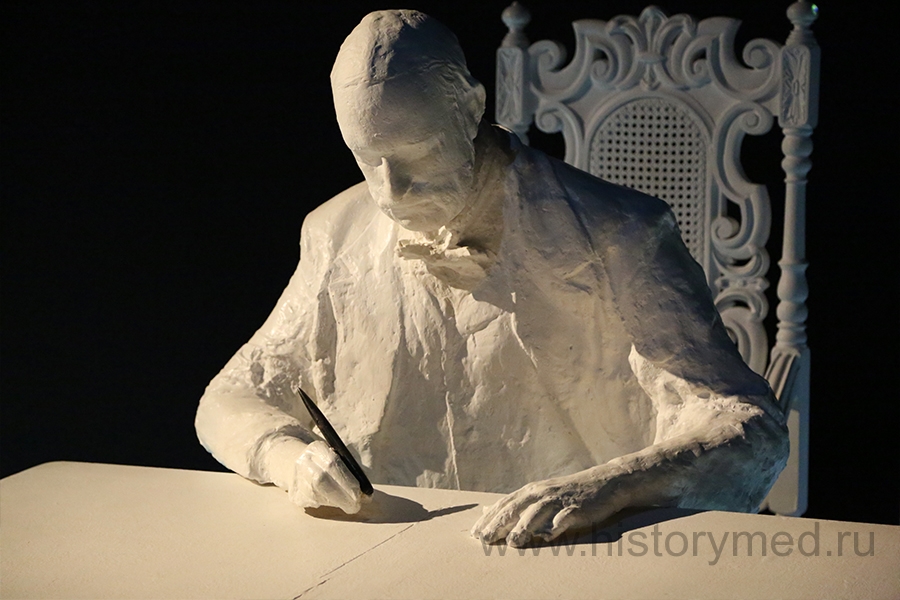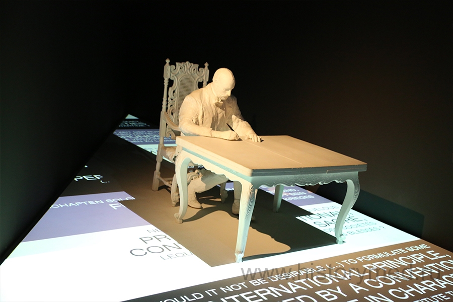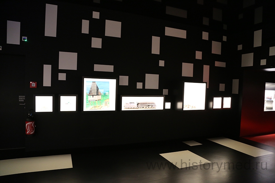 Массивная белая статуя Анри Дюана открывает экспозицию. Очень помогает аудиогид, который «говорит» на всех языках. Он сам включается в залах и, по мере продвижения, меняет аудиофайлы. У некоторых стендов можно ввести номер и получить отдельную информацию. Сделано все очень интуитивно и удобно.
