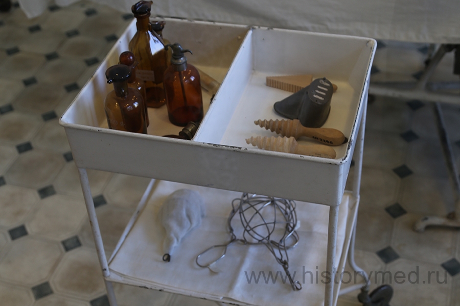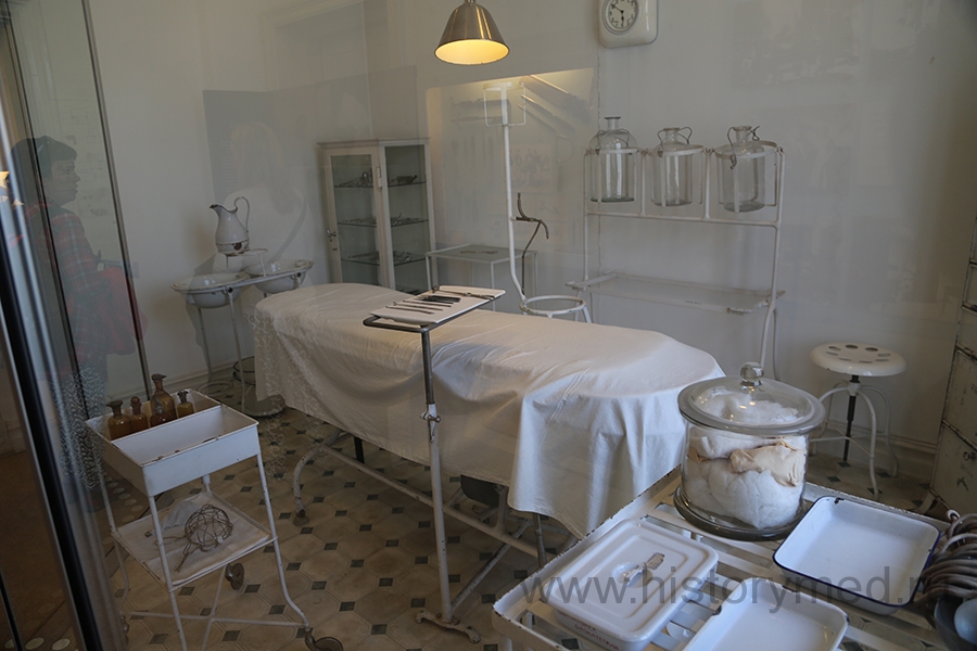 С любовью сделана и операционная начала ХХ века. Обращает на себя внимание столик для наркоза – все инструменты расположены так, как будто сейчас привезут больного.