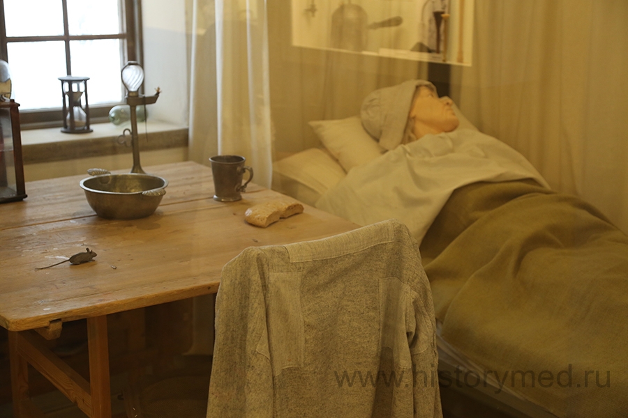 Вообще, в проектировании экспозиции, чувствуется вкус и рука художника. Инсталляции практически в каждом зале - вот палата для больного, а вот комната для приема пациентов в доме у доктора, а вот врач задумался за рабочим столом. Вроде и места в залах не так много, а показано все.