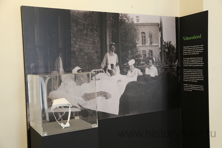 По всей экспозиции представлен проект, который мы бы назвали «Ожившие фотографии». Идея очень интересная и заключается в следующем: большая выразительная архивная фотография и рядом представлена лишь одна деталь с этого снимка. Например, рядом с фотографией, где запечатлен прием у дантиста, - педаль для стоматологической установки, а рядом с фотографией лаборатории - подставка для пробирок.