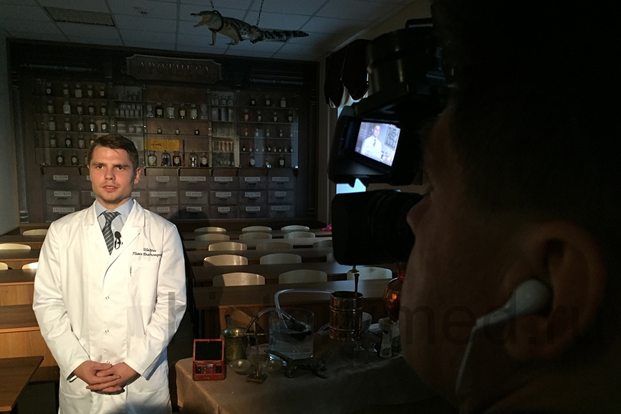Часть съемок прошла в Музее истории медицины МГМСУ им. А.И. Евдокимова. Нина Чиж, Павел Шадрин и Григорий Веселов наглядно продемонстрировали, как шёл процесс приготовления лекарственных препаратов, как работают различные механизмы и приспособления в аптеке.